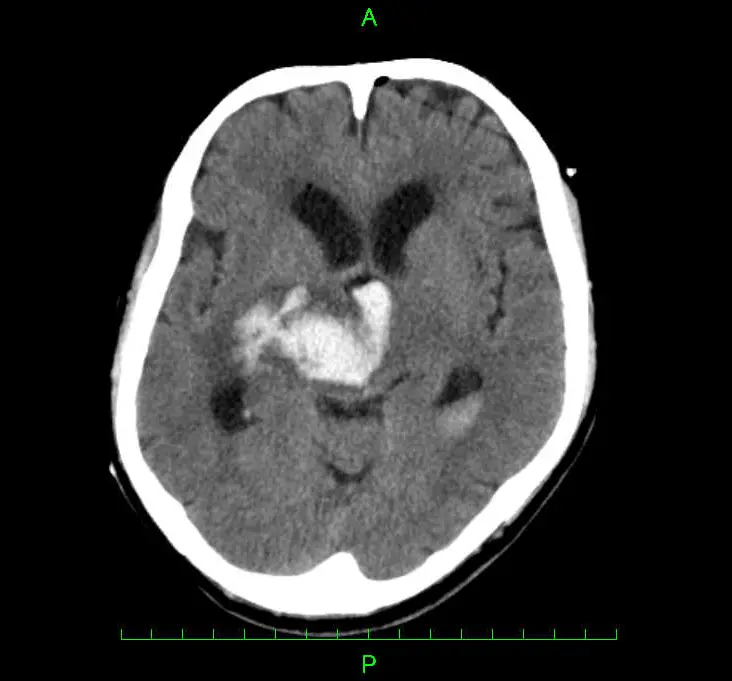 大脳や小脳、脳幹といった脳そのものの中で出血が起こり血腫(血のかたまり)ができることを脳出血(脳内出血)と言います。原因はほとんどが高血圧によるものですが、脳動脈瘤や脳動静脈奇形、脳腫瘍などによる場合もあります。出血が起きた脳の部位により大きく5つ(視床出血・被殻出血・小脳出血・脳幹出血・皮質下出血)に分類され、それぞれ異なる症状が出現します。なお、くも膜下出血は脳の外(表面)で出血が起きる病態のため、別のものとして分類されます。