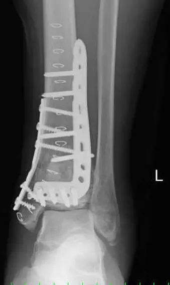 足関節関節内粉砕骨折(Muller AO分類43-C3、ピロン骨折:Ruedi分類gradeⅢ)に対して、創外固定術施行後に観血的整復固定術(以下、ORIF)と骨移植術を施行した症例