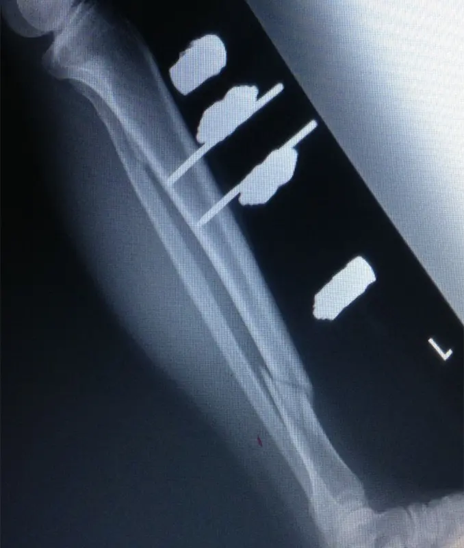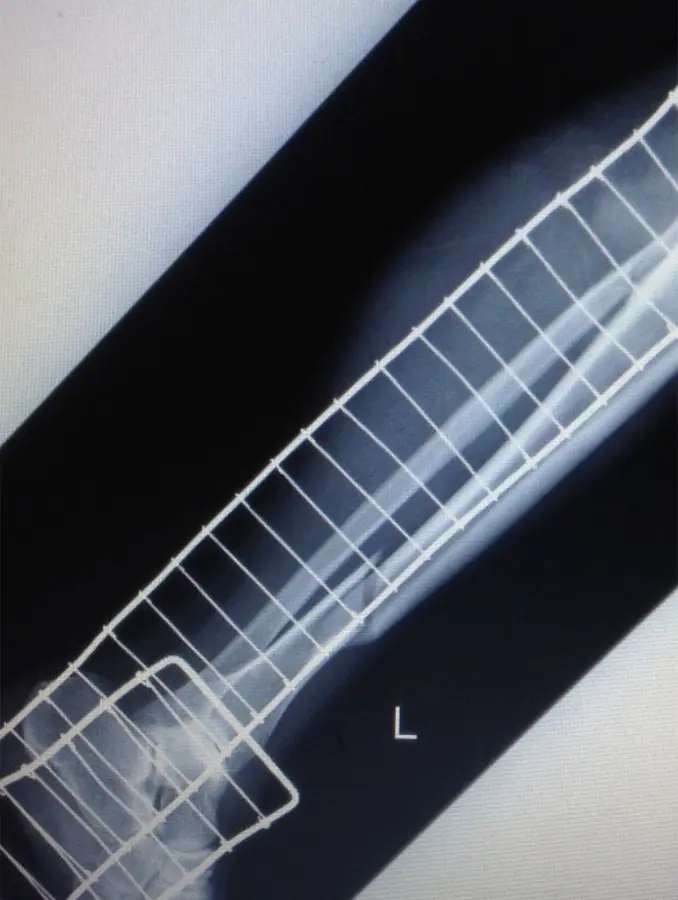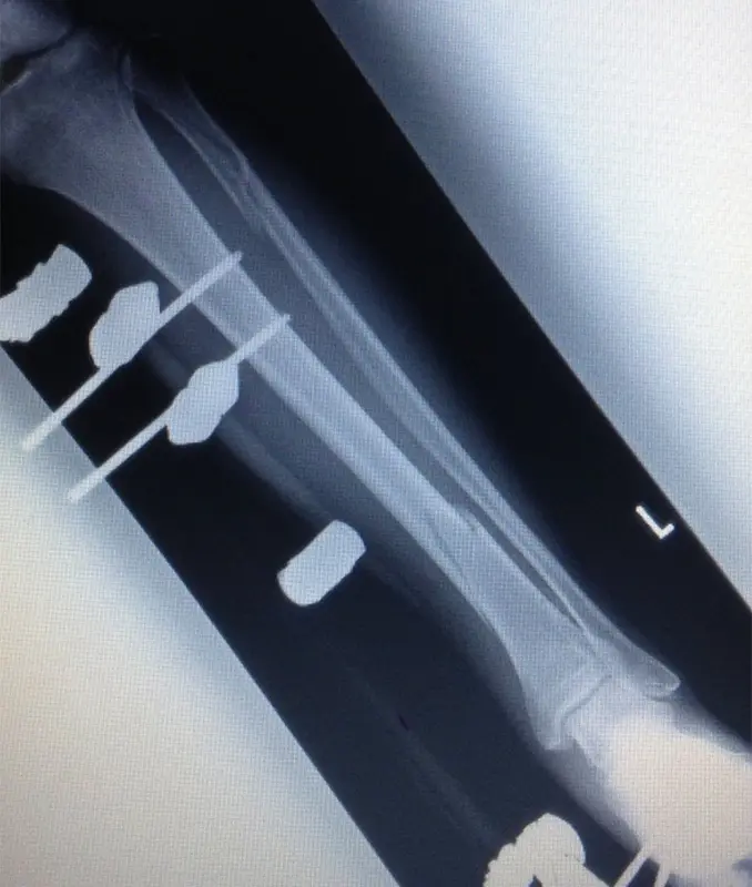 (図2)創外固定後単純X線