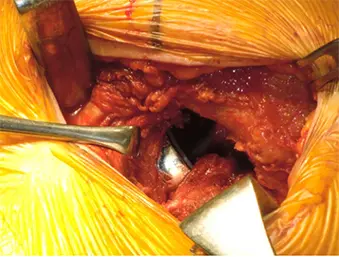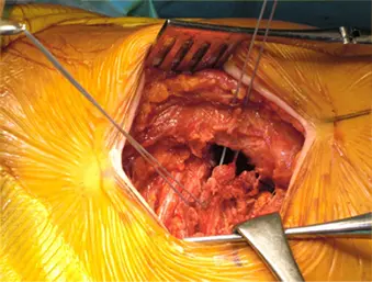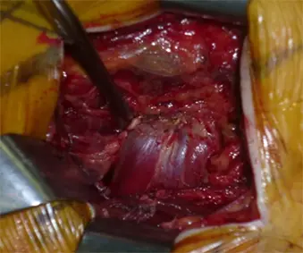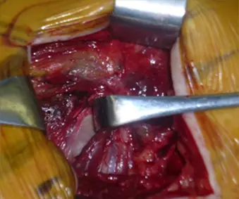 図2 下双子筋含む共同筋腱をレトラクト