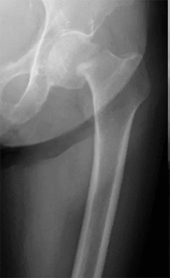 単純X線検査にて右大腿骨頸部骨折の所見(AO分類 31B)を認めた。