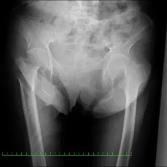 89歳女性。自宅にて歩行中に転倒受傷し、当院の救急外来へ搬送された。来院時の股関節単純エックス線像(図1)において左大腿骨頚部骨折(Garden3型、Müller AO分類31-B2)を認め、手術施行目的にて当科入院となった。受傷前のADLは杖を使用して独歩可能であった。既往歴は高血圧、高脂血症、アルツハイマー型認知症。また入院時諸検査において特記すべき事項はなかった。