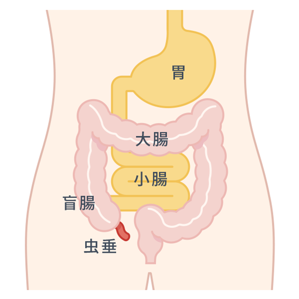 虫垂炎(ちゅうすいえん)とは、大腸の一部である虫垂に炎症が生じる病気で、急性の虫垂炎は一般的に「盲腸」として知られています。虫垂は盲腸から分岐する袋のような形をした臓器で、この部分に感染や炎症が起こることで症状を起こします。