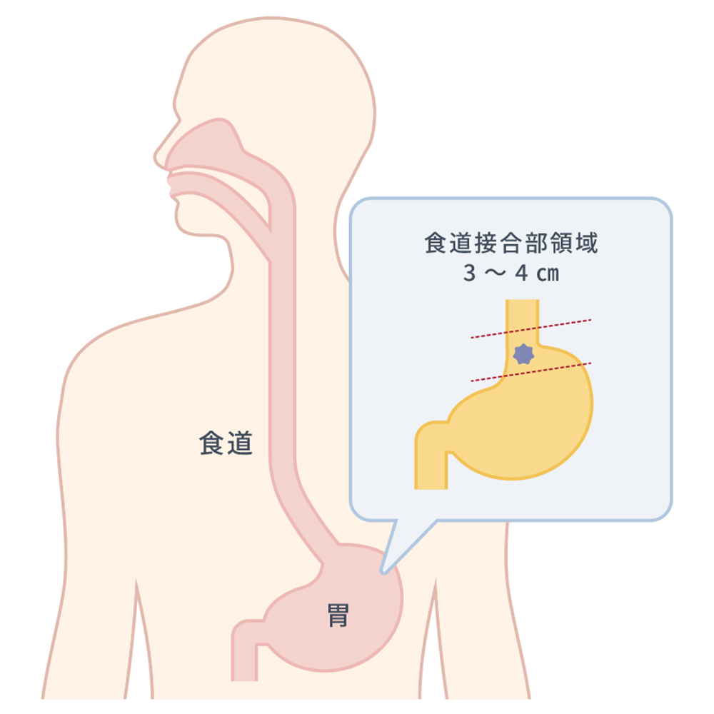 食道胃接合部がん(しょくどういせつごうぶがん)とは食道と胃の境目付近に発生するがんの呼称です。食事の欧米化に伴い、日本において近年増加傾向にあります。胃がんと食道がんの両方の特徴を併せ持ち、集学的な治療が必要となることもあり、独立したひとつのがん種として扱います。