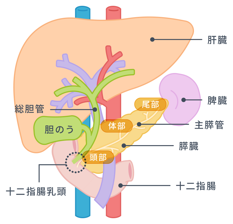 膵がん(すいがん)とは膵臓に発生するがんのこと。特徴として初期症状がほとんどないため、手遅れの状態で発見されることが珍しくありません。膵がん全体での5年生存率は8%と予後の悪さが目立つがんです。消化液を運ぶ管である膵管で発生することがほとんどで、決してケースとして多くはありませんがIPMN(膵管内乳頭粘液性腫瘍)からがんになる場合もあります。IPMN自体は一般的な病気であるため注意が必要です。