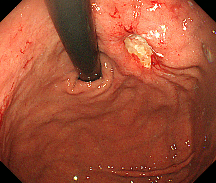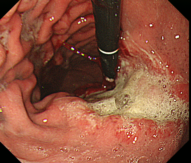 口から挿入したスコープ(カメラ)でがんのある部位を切除します。おなかを切ることがないため、術後の痛みがほぼなく、入院期間も短かく済みます。がんが粘膜内にとどまっている場合のみ適応があり、それよりも進行している場合は手術をはじめとした他の治療が行われます。