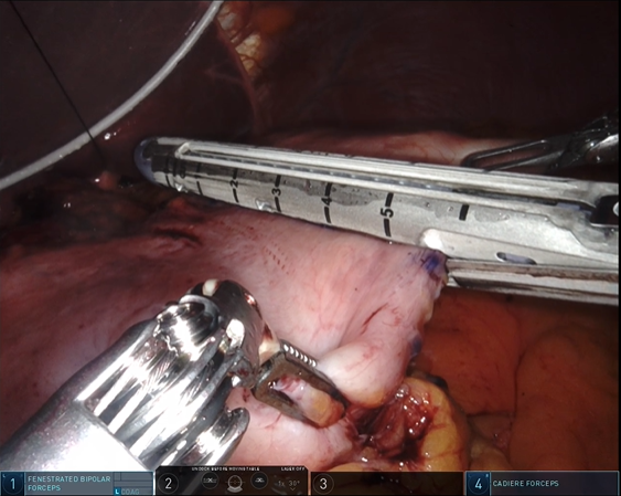 がんのある部位を切除して繋ぐ(吻合)手術です。腹腔鏡手術が主流となっています。昨今では、手術支援ロボットを使用するロボット支援下手術(ロボット手術)も実施されています。がんの部位や進行度、周囲の臓器への浸潤があるかなどにより、様々な術式が用いられますが、がんの根治(がんをとりきる)を前提としたうえで、なるべく患者様の身体に負担が軽い手術が行われます。