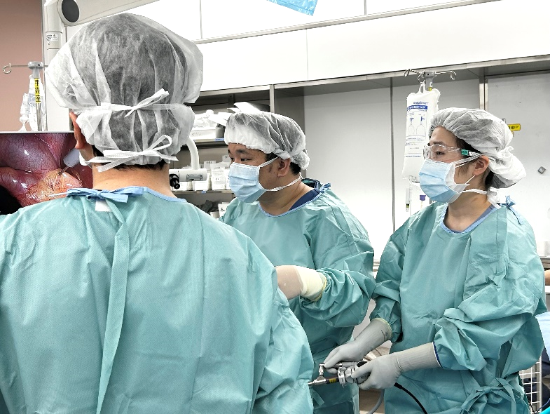 2023年10月よりスコープオペレーター業務を行っています。内視鏡下手術では、数ヶ所の小さな穴から、体内にスコープや手術器具を挿入し、モニターを見ながら手術を行います。スコープオペレーターは、清潔野で挿入されたスコープ(硬性鏡)を操作し、術野の視野を確保することで、術者の眼となる重要な役割を担っています。臨床工学技士は、手術が円滑にできるようサポートをしています。