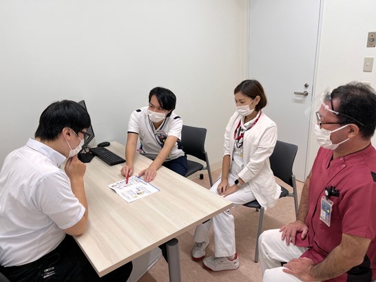 当院には、11名のがんの専門・認定薬剤師が在籍しています。これは大学病院やがん専門病院を除くと全国的にも非常に多い数です。がん患者様への服薬指導、治療レジメンの整備や冊子の作成、院内外の勉強会など様々な活動を行っています。近年では、医師診察前に面談を行う「がん薬剤師外来」や、患者様がスマートフォンを用いて体調を入力し、副作用の早期発見につなげる「電子患者日誌」に力を入れており、治療の質の向上や医師の負担軽減にも貢献しています。