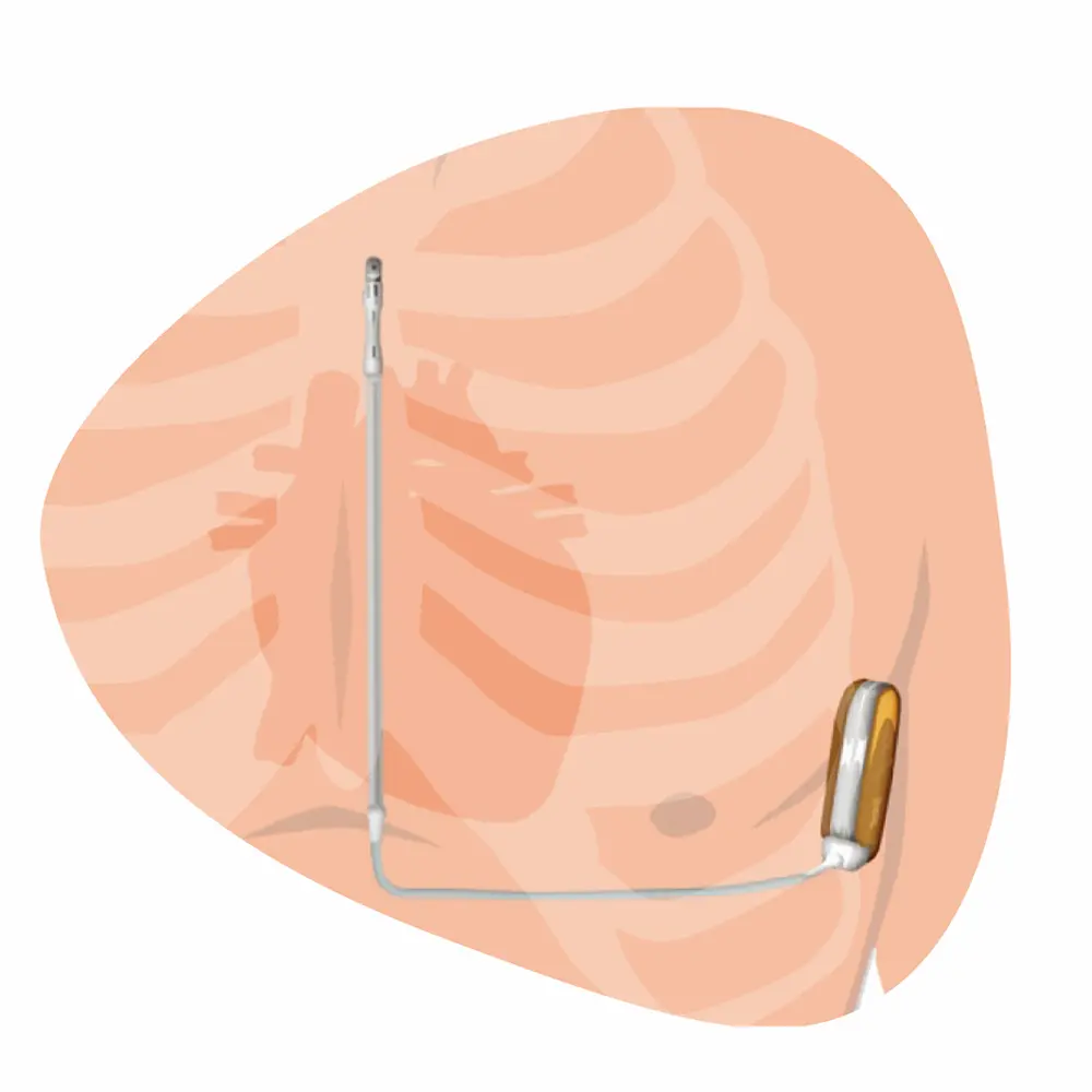 S-ICD(完全皮下植込み型除細動器)は最近使用され始めた機器です。致死的な頻脈を検知した時に心臓に電気ショックを加えて脈を正常に戻す働き(除細動)をするICDの一種です。従来型ICDではデバイス感染とそれによるリード抜去という植込みデバイス最大の合併症が起こる可能性を排除することは出来ませんが、S-ICDではこれらのリスクを避けることができます。そうした優れた特徴から当センターでは積極的に使用しています。