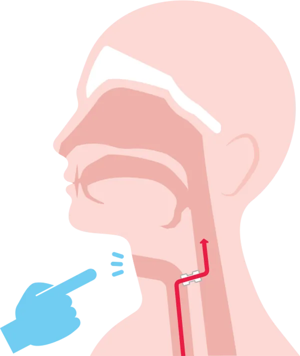 声帯の摘出が必要となった場合でも、器具を挿入して声を出せるようにする手術も実施しています(適応は限られるため、すべての患者さんに施行できるわけではありません)。ボイスプロステーシス(製品名:プロヴォックス)と呼ばれるこの器具は気管と食道の間に設置され、発声の際に肺の空気を食道に送り込むことで声を発する仕組みです。食道発声よりは習得が容易で、電気喉頭より明瞭な発声が得られることが多いですが、患者さん自身でのメンテナンス、定期的な器具の交換が必要になります。
